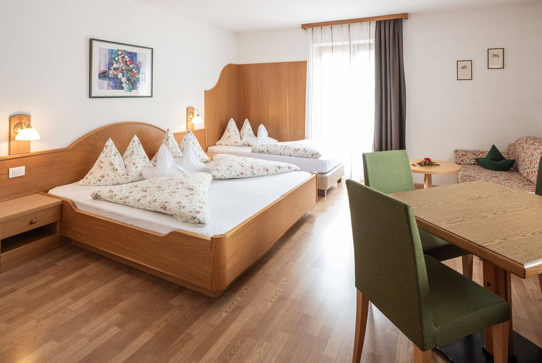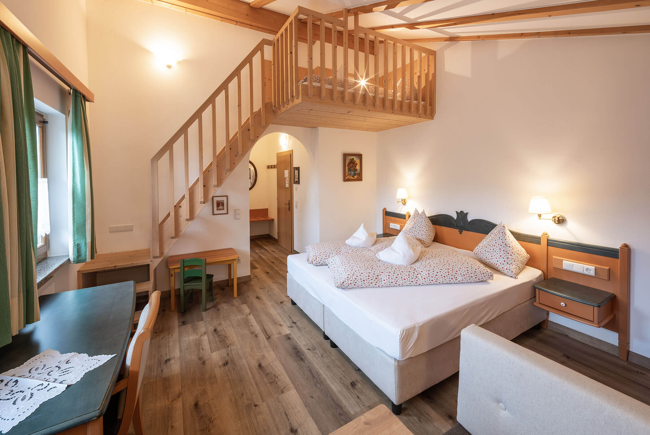 Mit viel Liebe zum Detail sorgt jedes unserer 13 Zimmer für besondere Wohlfühlmomente. Natürliche Materialien und stilvolle Akzente runden den stimmigen Gesamteindruck ab und sorgen für eine angenehme Atmosphäre. Die modernen Räumlichkeiten verfügen über Dusche, WC, Haartrockner, Telefon, Safe, TV sowie kostenloses WLAN. Einige unserer Zimmer bieten zudem einen Balkon mit einem herrlichen Blick auf den Kronplatz. Sich in die weichen Betten kuscheln, den Blick über die wunderbare Bergwelt schweifen lassen und es sich gemütlich machen!